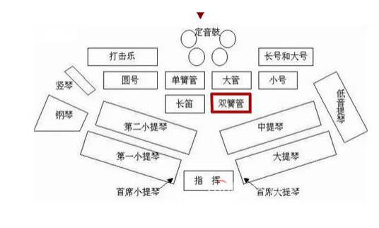 81、正确答案是B 解析:本题考查音乐常识。美式乐队席位排列法是国际上较为常见的一种乐队席位排列法,在演奏浪漫 派以及近、现代的交响乐作品时优越性较大。美式乐队席位排列法如下图所示,因此题中★的位置为第一 小提琴所在的位置,而题中A为竖琴,B为小提琴,C为钢琴,D为圆号(法国号)。