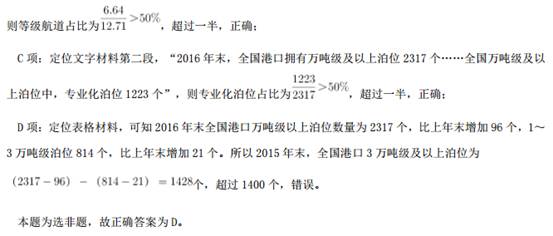 15.答案:C 解析 第一步:找出定义关键词。 “一个交通网络上增加一条路段” 、“没有减少交通延滞”、“整个交通网络上所有出行者的出行 时间都增加” 第二步:逐一分析选项。 A 项:H 市拆除了一条高速路,修建一座公园,没有增加一条路段,不符合定义,排除; B 项:G 市将市内主干道相连的几条单行线改为双向通行,没有增加一条路段,不符合定义,排除; C 项:N 市修建了一条地下隧道,属于增加一条路段,隧道建成后交通反较之前更为拥堵,属于没有 减少交通延滞,反而使所有出行者的出行时间都增加,符合定义,当选; D 项:W 市新建了两条 4 车道柏油马路后,市内交通不再像以前那么拥堵了,减少了交通延滞,不符 合定义,排除。 故正确答案为 C。