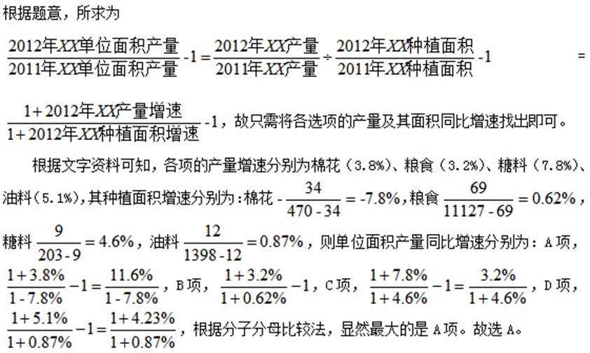 119、以下农作物中,2012年单位面积的产量同比增速最快的是: