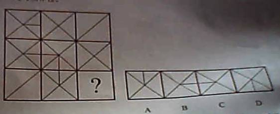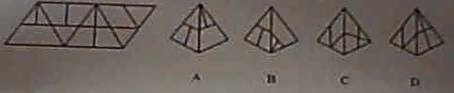 62.左边给定的是纸盒的外表面,下列哪一项能由它折叠而成?