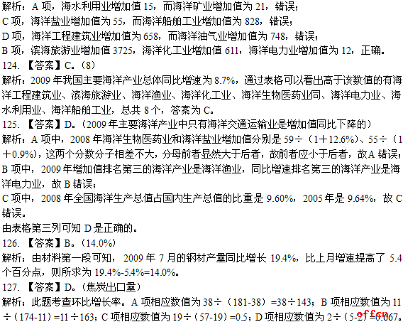 124. 2009年我国有几个海洋产业增加值的同比增幅高于主要海洋产业总体水平?