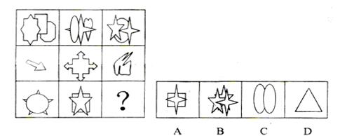 72.从所给的四个选项中,选择最合适的一个填入问号处,使之呈现一定的规律性。( B )