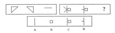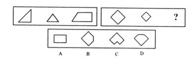 二、图形推理:每道题包含两套图形和可供选择的4个图形。这两套图形具有某种相似性,也存在某种差异。要求你从四个选项中选择你认为最适合取代问号的一个。正确的答案应不仅使两套图形表现出最大的相似性,而且使第二套图形也表现出自己的特征。