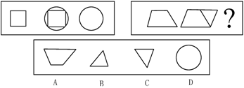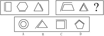 解答:正确答案为C。因为在第一套图形中多边形均有一条边双线,在第二套图形中均有二条相邻的边双线。