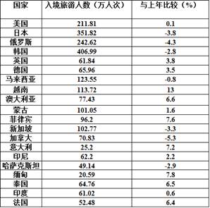 B.2012年,在20个主要的客源国中,六成来自亚洲