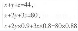 38.【答案】A。解析:设买1件、2件、3件的分别有x、y、z人,每件商品原价为1,则由题意列方程组