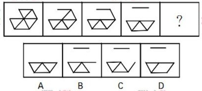 85.C所给图形每次递减一条线条,且所递减的线条与前一条递减的线条所夹角度为60度,故选C