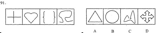 解答:正确答案应为A。左边图形中1个小星形相当于2个小圆形,通过换算,左边每格中均为14个小圆形。
