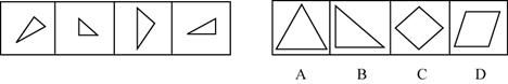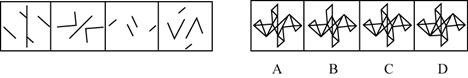 [二]右边的四个平面图形中,只有一个是由左边的四个图形拼合而成的,请选出。