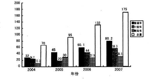 (一)某地2004年至2007年乘用车保有量结构变化图