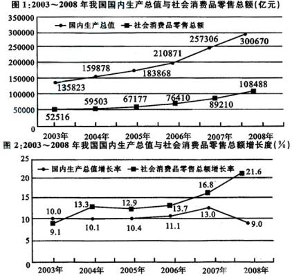 (1)2004~2008年我国国内生产总值呈逐年递增态势