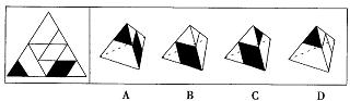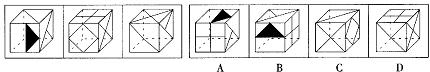 (三)左边给定的是纸盒的外表面的展开图,右边哪一项能由它折叠而成?
