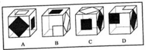 (三)左边给定的是纸盒外表面的展开图,右边哪一项能由它折叠而成?请把它找出来。