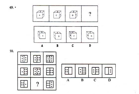 一、 图形推理。请从所给的四个选项中,选择最合适的一个填入问号处,使之呈现一定的规律性。