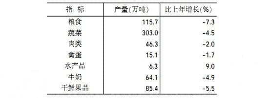 118.该市主要农副产品与上年相比,产量变化绝对值最小的是( )