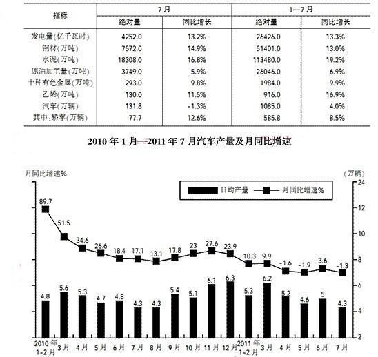 A、表中产品2011年7月产量同比增速均慢于上半年