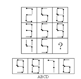 77、从所给的四个选项中,选择最合适的一个填入问号处,使之呈现一定的规律性: