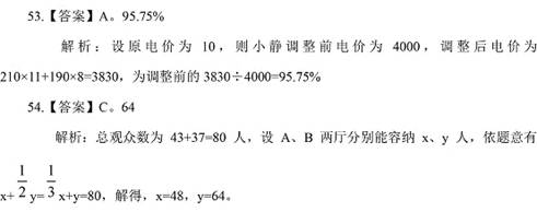 51.答案C。解析:直接设第三题分值是X,则第二题分值是X-4,第一题分值为X-4-4=X-8,则可以得到方程:(X-8)+(X-4)+X=60。解得:X=24。直接选C。