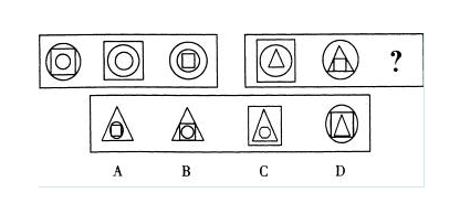 每道题包含两套图形和可供选择的4个图形,这两套图形具有某种相似性,也存在某种差异。要求你从四个选项中选择你认为最适合取代问号的一个。正确的答案不仅使两套图形表现出最大的相似性,而且使第二套图形也表现自己的特征。