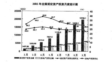 注:图中的数据为截止当月底的数据,如:由上图可知2002年截止6月份,我国房地产投资总额为2821.3亿元。