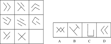 108.从所给的四个选项中,选择最合适的一个填入问号处,使之呈现一定的规律性。
