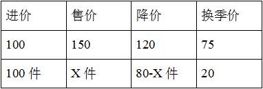 58. D, 赋值法计算,列方程得:150X+120(80-X)+75×20>12500,解得X>46