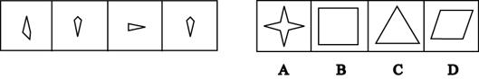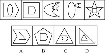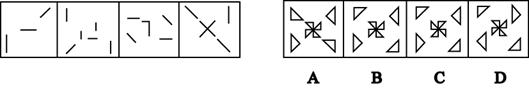 [一]每道题在左边的题干中给出一套图形,其中包括五个图,这五个图形呈现一定的规律性。在右边给出一套图,其中有四个图,让考生从中选出一个作为保持左边五个图规律性的第六个图。