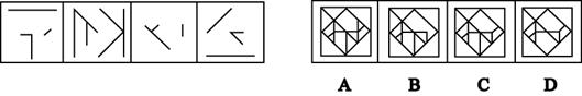 【解析】 这个题目相对前面的几道组合题目而言,比较简单。根据左对角线方向上的线段数量,很快找到答案。左对角线方向上的线段数量应该是3。只有A符合。