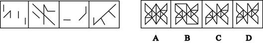 【解析】 解决这类题目有很简单的办法,可以说,一旦把握这类题目题目的解答技巧,考试中相应部分的题目是送分题目。很多考生觉得这部分题目难度大,因此有充分的理由相信,如果图形推理考察的力度还是保持2006年的力度,这类题目的考察是必然的。至于具体的解答技巧,因为涉及到工具的使用和演示,这里不作介绍也无法介绍。感兴趣的朋友可以同过网络探讨交流。