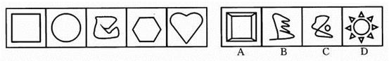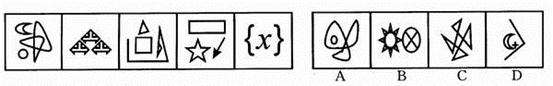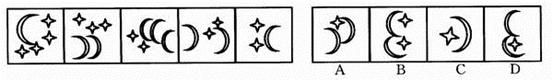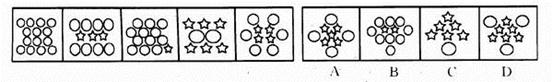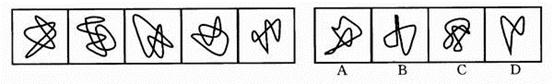(一)每道题在左边的题干中给出一套图形,其中包括五个图,这五个图形呈现一定的规律性。在右边给出一套图,其中有四个图,从中选出唯一的一项作为保持左边五个图形规律性的第六个图。