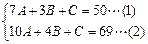 (1)×6-(2)×4,得:2A+2B+2C=300-276=24,故正确答案为C。