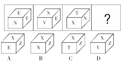 三、图形推理。 共 10题,每题1分,共10分。每道题包含问题图形和4个备选图形,问题图形具有一定的规律,请你从四个备选项中选择你认为最符合规律的一项。