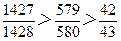 越小,其结果越大,又因为1428>580>43,所以