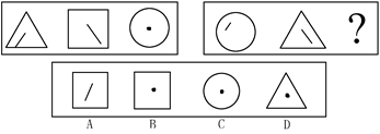 时间:2013-02-21 11:09:42 2.每道题包含两套图形和可供选择的4个图形。这两套图形具有某种相似性,也存在某种差异。要求你从四个选项中选择你认为最适合取代问号的一个。正确的答案应不仅使两套图形表现出最大的相似性,而且使第二套图形也表现出自己的特征。 【例题】 解答:正确答案为C。因为在第一套图形中多边形均有一条边双线,在第二套图形中均有二条相邻的边双线。 55. 56. 57. 3.在右面的4个图形中,只有一个是由左边的纸板折叠而成。你需要选出正确的一个。 【例题】 解答:在例题中,只有D可以由左边的纸板折叠而成。因此,正确答案是D。 58. 59. 60. 二、定义判断。共10题。每道题先给出一个概念的定义,然后分别列出四种情况,要求你严格依据定义从中选出一个最符合或最不符合该定义的答案。注意:假设这个定义是正确的,不容置疑的。 请开始答题: 61.商标侵权,指他人出于商业目的,未经商标所有人的许可而擅自使用其已注册商标,或把他人注册商标的主要部分用作自己的商标,并使用在相同或类似的商品上,从而产生商标混同,以欺骗消费者。 下面几种情况中不属于商标侵权的是( )。 A.甲企业未经商标所有人乙企业的许可,在与乙企业类似的商品上使用与其注册商标近似的商标 B.某毛巾厂注册“418”牌商标,在市场销路打开以后,有的企业在“418”前加注某某牌,使“418”商标转化为商品名称 C.国内某企业并没有把“IBM”商标直接用在其商品上,而用在广告和其他宣传活动中 D.国内某商场的名称使用了某房地产企业已获准注册的房地产类“亚细亚”商标名称 62.信息社会,又称信息化社会,指信息成为比能源、物资更重要的资源,以信息价值的生产为中心,以信息工业为支柱和主导,促进经济高速发展的智力密集型社会。 下列不属于信息社会基本特征的一项是( )。 A.信息成为重要资源,对信息的生产、储存、加工、处理成为主要的产业 B.信息和知识成为生产力、竞争力和经济成就的决定性因素 C.从事信息工作的人是主要的劳动者,代表了先进的生产力方向 D.国庆期间,中关村电脑市场的品牌机销售超过一亿元人民币 63.政企分开,是指区别所有权和经营权,把各级政府主管部门原来直接管理企业生产经营的许多职权,交还给企业,使政府管理经济的重点由微观转向宏观的一项经济体制改革。 下列符合政企分开的一项是( )。 A.企业政府所有,也由政府经营,政府全权负责管理 B.政府与企业脱钩,企业想怎么就怎么 C.政府主要搞好统筹规划、提供服务和检查监督,企业自主经营,自负盈亏 D.政府重派官员管理企业,企业人事制度和工资等制度由政府开会讨论决定 64.赫兹伯格的双因素理论区分了两大类影响人们工作的因素,一类是与工作环境和条件相关的保健因素,这些因素处理不好,员工就会感到不满,即使解决了也只是没有不满而已;一类是与工作本身有关的激励因素,表现为工作的性质、实际的责任、个人成长和获得认可的机会以及成就感等,这些因素具备了,就可以对员工产生激励。 下列属于激励因素的是( )。 A.人际关系 B.技术监督系统 C.公司的政策与行政管理 D.上级对个人工作的认同 65.有限责任公司,又称有限公司,指依照公司法的有关规定设立的,股东以其出资额为限对公司承担责任,公司以其全部资产对公司的债务承担责任的企业法人。其股东人数有 最高人数的限制,不能公开募集股份,不能发行股票,而且股东转让有严格限制。 下列单位不是有限责任公司的是( )。 A.北京电气有限责任公司 B.北京市证券交易所挂牌上市的100家公司 C.河北食品贸易有限责任公司 D.公司倒闭破产后,公司经理的股份全部亏空,但他个人财产不受影响的公司 66.名单提名,是选举中提出候选人的一种方式,即参加竞选的政客,不是个别地提拔候选人,而是将该党在某个选区的全部候选人列入一张名单,提交选民选择。 下列属于这种选举方式的是( )。 A.中国共产党向其他党政机关推荐优秀人才担任相应的职务 B.校长向教委提供优秀教师候选人名单 C.英国工党向选民提出10名候选人作州长 D.县委决定从3名候选人中差额选举书记 67.劳动输出,指生产力水平较低,生活条件较差的国家和地区,为了积累资金、开拓视野、吸收先进技术、增长见识和培养自己建设队伍的素质,把一部分剩余劳动力转向生产力水平较高,生活条件较富裕,劳动报酬较多的国家和地区从事合同制的工作和劳动服务的一种形式。 下列属于劳动输出的是( )。 A.某大学教授到边远地区大学兼职 B.甲县向乙县借调技术干部 C.四川、江西民工到广东找工作 D.甲厂倒闭,其工人大部分经培训后安置到邻近的乙厂工作 68.前馈控制是以未来为导向的,它的目标是在偏差发生之前阻止其发生。 下列属于前馈控制的是( )。 A.管理者可以根据连续化的业务数据流更新预算 B.实际发生的费用与季度预算进行比较 C.银行要求在发放贷款前签订一系列的文件、备忘录并必须经过主管审批 D.监控系统可以实时跟踪每台机器的运行指标,以便管理者及时修正差错 69.考任制,就是政府为推行公务,采用公开竞争考试的科学方法,来测量并判断其所需要的人员是否合乎标准,进而按考试成绩的优劣进行挑选,取其优者来加以任用为政府工作人员的一套制度。 下列任用方式属于考任制的一项是( )。 A.秦始皇设立郡县制度,所有