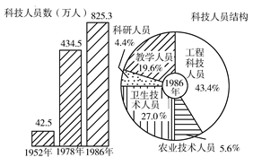 127.1986年科技人员中,占比重最大的是( )。