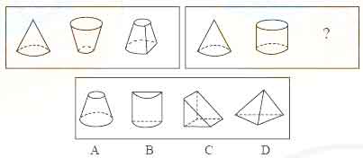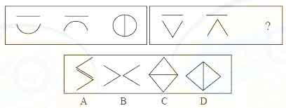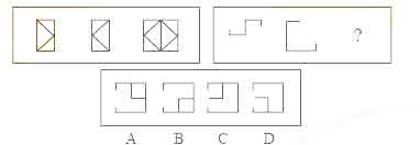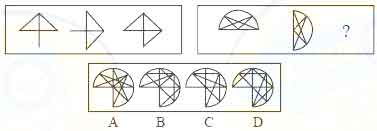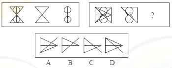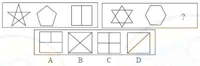解答:正确答案为D。因为只有D能使两套图形具有相似性,仅仅元素不同,一个是半圆,一个是半个正方形,但两组图形中元素的排列规律完全相同。
