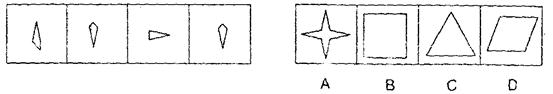 ()每道题在左边的题干中给出一套图形,其中包括五个图,这五个图形呈现一定的规律性。在右边给出的一套图,其中有四个图,让考生从中选出一个作为保持左边五个图规律性的第六个图。