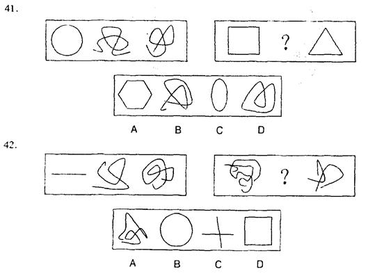 41【解析】第一套图形都由曲线组成的;第二套图形都由折线组成的。所以选A