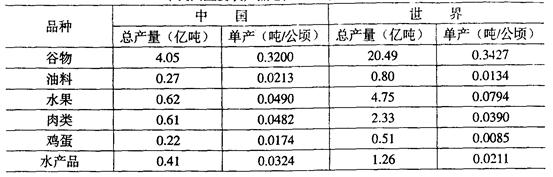 95.假设一种农产品只产于我国,在2000年的总产量为0.03亿吨,若将该作物的总产量和单产情况列入表中,其在中国的总产量、单产和在世界的总产量、单产数据分别约为