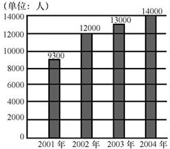 某企业2001年至2004年度人力资源增长情况图