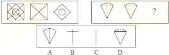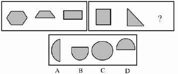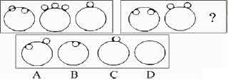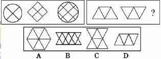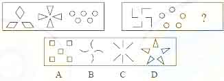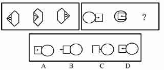 解答:正确答案为D。因为只有D能使两套图形具有相似性,仅仅元素不同,一个是半圆,一个是半个正方形,但两组图形中元素的排列规律完全相同。