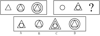 解答:正确答案为C。因为在第一套图形中多边形均有一条边双线,在第二套图形中均有二条相邻的边双线。