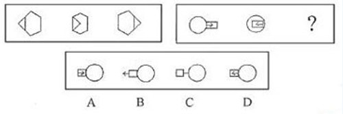 一、图形推理:共10题。每道题包含问题图形和可供选择的4个图形。问题图形具有一定的相似性,也存在某种差异。要求你从中找出其变化的规律,并把这些规律正确地运用到解题过程中,或者依据图形变化的规律进行选择。