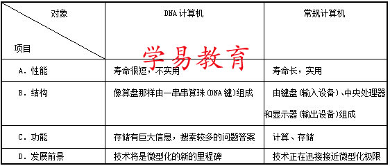 49.编制《DNA计算机与常规计算机的比较表》,其中不正确的一项是( )。