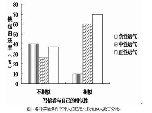 C.在写信者与参加实验者不相似的情况下,信件中性语气比信件不太客气语气所导致的钱包归还率低。从这一结果来看,该研究的人群抽样有很大漏洞。