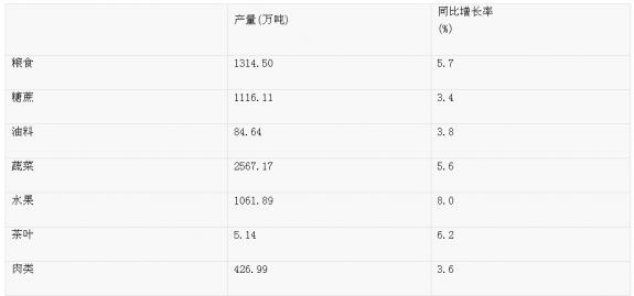 0.2%;油料种植面积33.14万公顷,增长2.3%;蔬菜种植面积113.84万公顷,增长2.3%