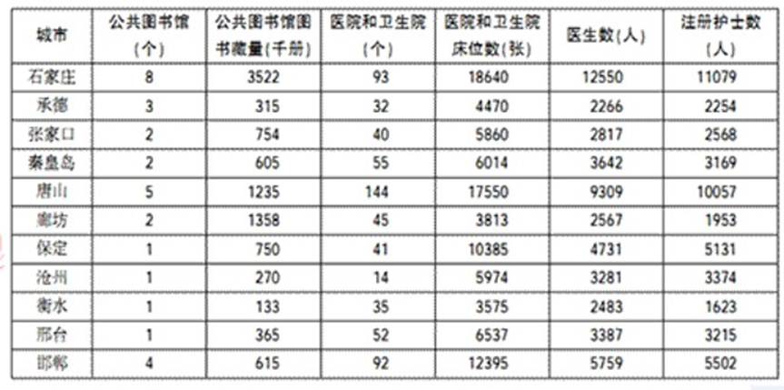 87.2011年,河北省各市的公共图书馆、注册护士、医院和卫生院数量均排在前五位的市有几个?