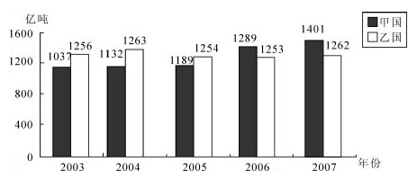113、2003年~2007年,甲国平均每年必乙国少排放的碳总量为: