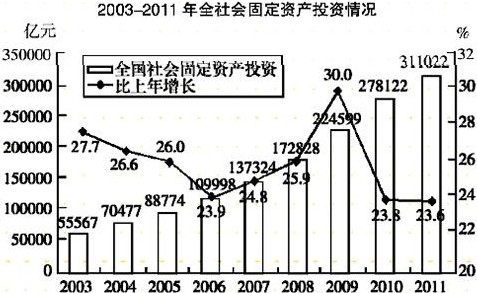 A.2011年,全社会固定资产投资额比2003年增加了近6倍