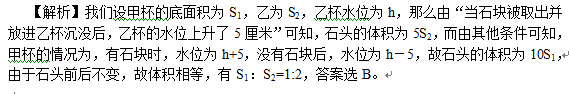 58.【解析】C。连接AC,由于E为AD的中点,有AE=ED,故三角形ACE的面积等于三角形CDE的面积,又因为甲、乙两部分的面积之比是15:7,故三角形CDE的面积与三角形ABC的面积之比为7:8,而三角形ABC的面积等于1/2×AB×h,其中h为梯形的高,而CDE的面积等于1/2×CD×1/2×h,故AB:CD=4:7,故答案选C